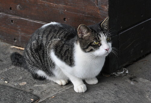 不理會來來往往的遊人;有的貓咪會主動接近遊客,搖著尾討食;有的貓咪則畏畏縮縮的孤獨站在屋簷高處,既期待又怕受傷害,不敢靠近別貓的地盤;