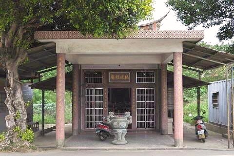 我繞到廟的後方,發現楊統領廟是興建於墓塚之前,廟後有一座長方形水泥砌建的墓塚。
