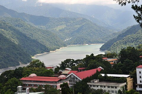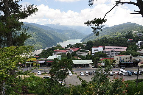 從德龍宮前的廣場眺望遠處的霧社水庫。