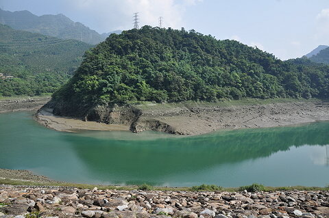 就在電廠旁的眺覽平台眺覽電廠所在的明湖水庫風景。