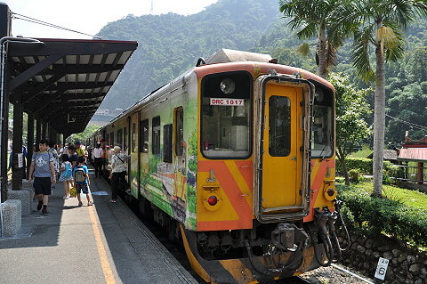 我們搭乘上午十點二十分的列車。這班火車抵達車埕時,帶來不少遊客,