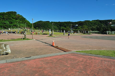 眺覽海蝕地形「萬人堆」。遠處海水游泳池,整修中。