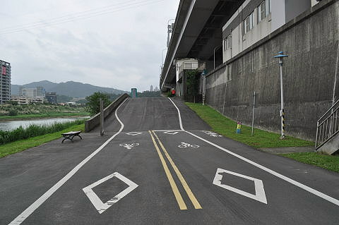 基隆河左岸自行車道,行經成美左岸河濱公園。