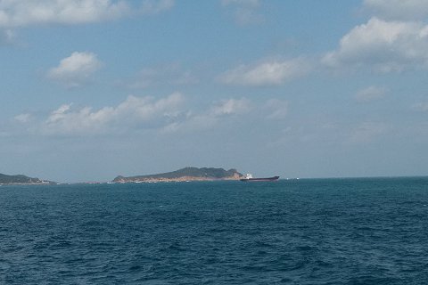 因為我們散步至中途時,海上天空雲朵忽然暫時散去,陽光露臉。這時老婆覺得有一點悶熱。