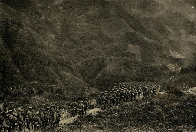 安達大隊前進馬赫坡高地的情景。