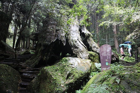 步道沿途經過千年古檜,來到松瀧岩瀑布上游的水岸,可惜雨天,無法悠哉賞景。步行約20分鐘,抵達步道終點天地眼。