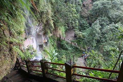 細雨綿綿,步道有點濕滑,穿雨鞋,不礙事。約15分鐘,即登抵銀河洞。銀河洞瀑布在洞窟之外,