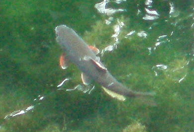 清澈的池水裡,也有成群悠遊的台灣馬口魚,魚兒彷彿知道自己住在保護區裡,所以並不畏懼遊客。我站在岸邊,