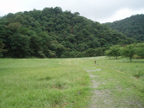 走至「竹區」時,又遇見兩隻獼猴從路旁樹上跳躍而下,準備橫過竹區及哈盆溪,至對岸的「草本植物區」。