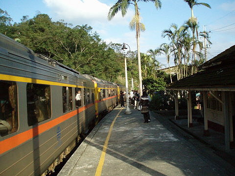 終於等到火車到站,這時菁桐車站已擠滿等待上車的遊客。列車每個車箱都爆滿,於是我們只搭一站,從菁桐到平溪,