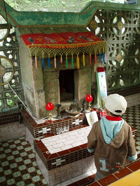 宿舍區旁也有一座古老的石砌土地公廟,與我是舊識。舊地重遊,我也帶老婆和小東