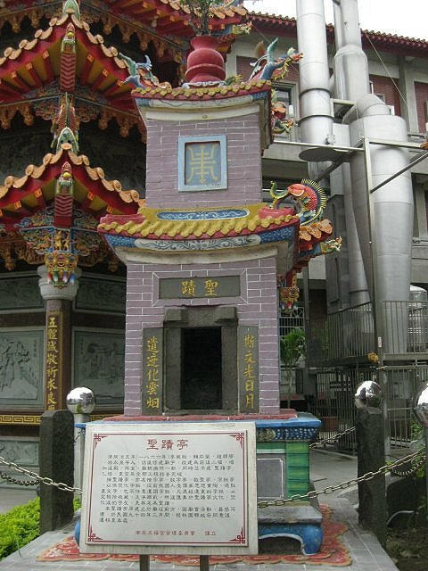 五福宮還有一個重要的歷史遺跡,是位於廟左側景觀公園前的聖蹟亭。