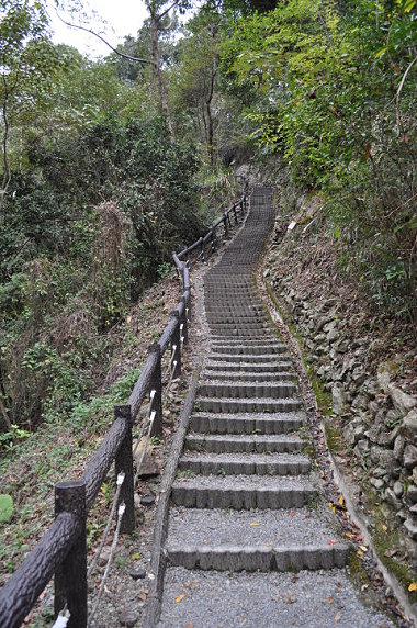 過了涼亭,開始下坡路,一路陡下。途中遇到一對情侶走得累喘吁吁,