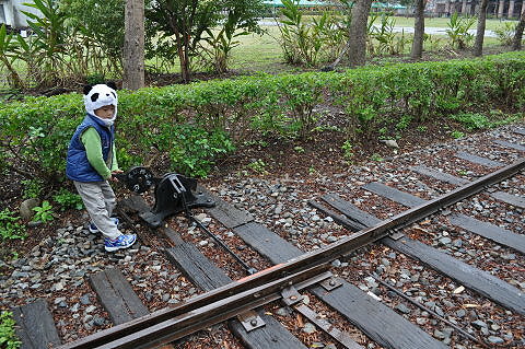 天氣濕冷,不適合騎單車,不過我家小東遊興不受影響。小東是鐵道迷,有火車頭可看,有鐵道可走,