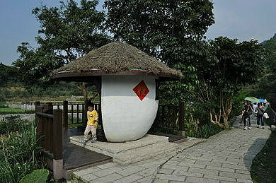 我們停留約四十分鐘,才繼續上路。只走一小段,來到穀倉造型的涼亭,又坐入涼亭閒聊一陣。