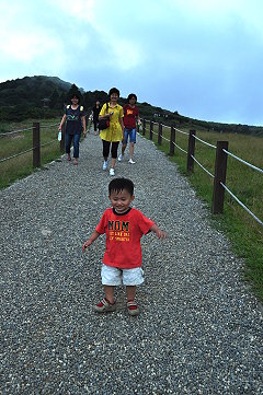 我們只走到碉堡而已,玩樂一陣,便循原路折返。小朋友腿短步快,很快就追上前面的婆婆媽媽們。離開擎天崗,