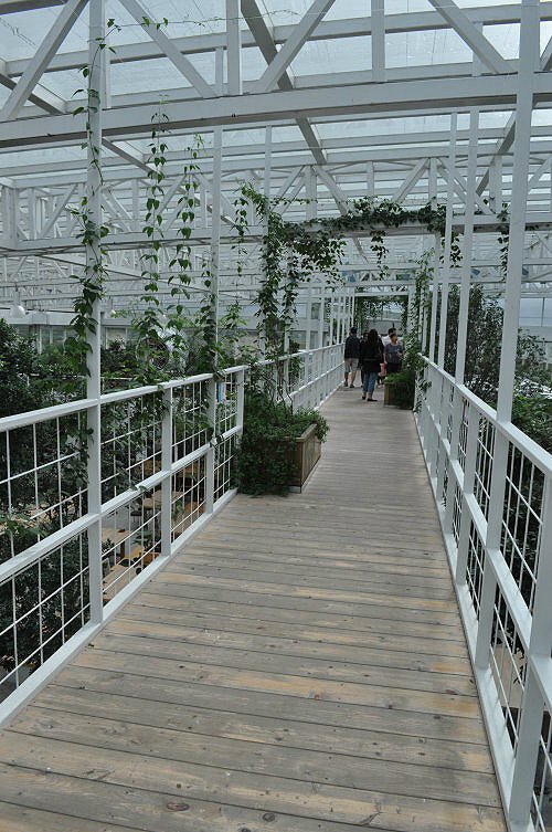 室內空間達1600坪,以鋼骨搭建的三層樓建築,室內種植各種芳香植物,還設有空中步道及觀景平台。