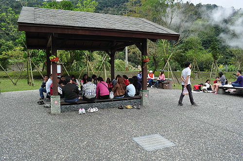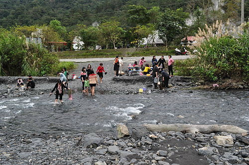 喜歡野趣的民眾,不到煮蛋池廣場,而跑去對岸溪床上的地熱露頭去煮食,那裡有搭篷圍帳,大概有民眾在泡野溪溫泉。