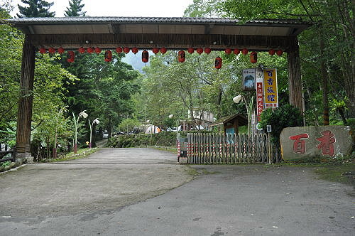 百香農場大門。面對大門的右側馬路不遠處即為小東河步道北登山口。