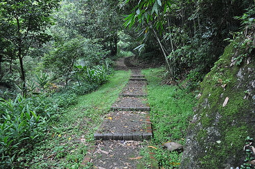 步道隨著地形變化,或鋪設枕木碎石子路,或架棧道階梯。途中設有觀景平台,