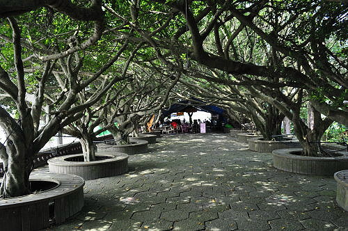 東港碼頭旁有一處榕樹公園。種植兩排十幾棵榕樹,樹冠枝葉茂盛,彼此相連,