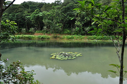 山豬窟埤塘。聚落荒廢後曾經變為荒地草原,如今又見湖光山色。