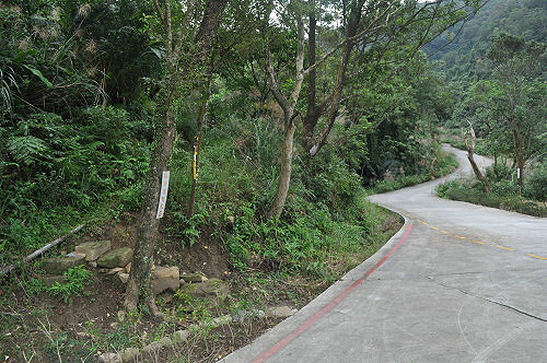直行有產業道路通往姜子寮絕壁。左側為舊登山步道入口。