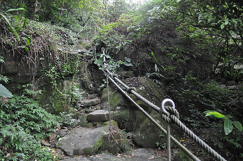 姜子寮絕壁,位於瀑布上方。岩壁新設石階及杆欄繩索。