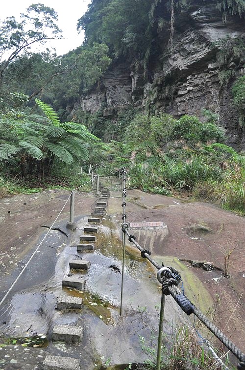即使雨季來訪,也不會擔心路滑跌倒。不過這樣的設施也使姜子寮絕壁減損了一些原始自然的景況。