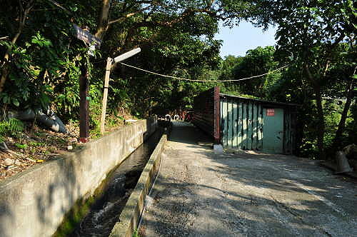 即可看路旁有一條水圳,不遠處的水圳旁即為步道入口。