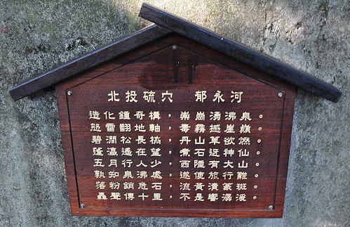 步道沿途水圳旁的壁牆有北投溫泉相關的詩詞及歌謠文學作品。